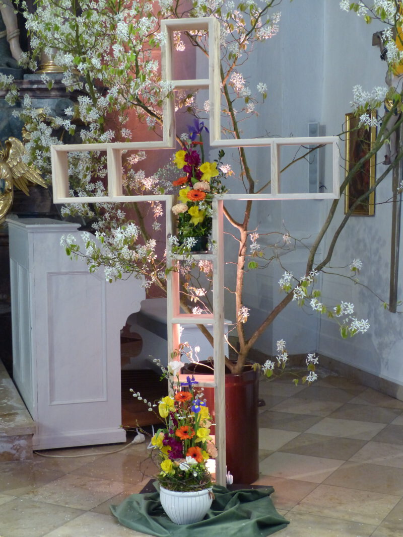 Die Kirchenmusik ist davon geprägt. In der Karfreitagsliturgie um 15.00 Uhr wird zur Kreuzverehrung von Klaus Heizmann der Gesang „Vor deinem Kreuz“ zu hören sein. Ein Stück Musik, das einlädt vor dem Kreuz still zu werden und den Tod Jesu zu gedenken. Doch das Stück bleibt beim Tod nicht stehen, sondern lässt schon die Hoffnung auf die Auferstehung anklingen. Die Ministrantinnen und Ministranten ratschen vor den Gottesdiensten am Karfreitag und der Trauermette am Karsamstag. Die Holzratschen sind dabei Ersatz für die Glocken, die zum Gottesdienst einladen. Als Zeichen der Trauer über den Tod Jesu Christi ist es Brauch, dass ab dem Gloria der Gründonnerstagsmesse bis zum Gloria der Osternacht die Glocken schweigen. Am Ende der Karfreitagsliturgie erklingt von Joseph Kronsteiner aus dem Kreuzweg der hoffnungsvolle Gesang „Mein Leib wird ruhen hoffnungsfroh“. Diese Hoffnung erfüllt sich am Ostersonntag in der Osternacht um 5.00 Uhr. Vor der Osternacht verkaufen Jugendliche kleine Osterkerzen. Diese werden für die Lichtfeier der Osternacht gebraucht, in der sich das Licht der Osterkerze unter den Mitfeiernden in der Kirche verteilt. Darüber hinaus gibt es Grablichter mit Deckel, die für den Besuch der Gräber der Angehörigen verwendet werden können. Das Osterlicht an den Gräbern ist ein starkes Zeichen der Hoffnung auf Auferstehung. Die feierliche Osternacht beginnt im Kirchenpark am Osterfeuer.